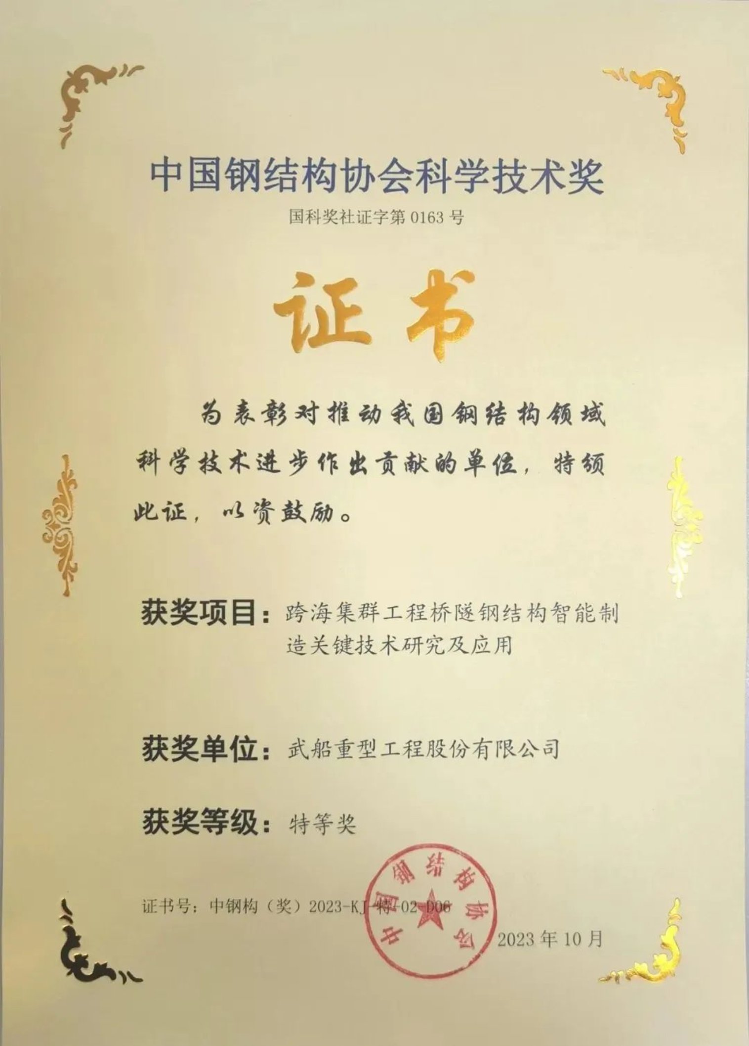 中國(guó)鋼結(jié)構(gòu)協(xié)會(huì)科學(xué)技術(shù)獎(jiǎng)特等獎(jiǎng)