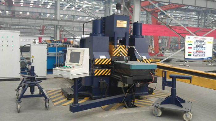 該設(shè)備是國(guó)際上最新機(jī)型,是船廠進(jìn)行肋骨加工的智能化設(shè)備。主要用于船體肋骨不同線型冷加工彎制,可加工球扁鋼、角鋼、T型材。通過(guò)對(duì)型材進(jìn)行自動(dòng)三維彎曲,可獲得平整的內(nèi)彎、外彎、S彎形狀的工件,也可進(jìn)行型材的校直和校平。工作過(guò)程是在全自動(dòng)狀態(tài)下進(jìn)行,并具備半自動(dòng)和手動(dòng)狀態(tài)下完成工作。