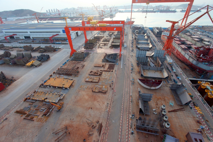承擔平面分段片體翻身、合攏和裝配工作;雙層底立體分段的焊接工作;頂邊艙立體分段的焊接工作;曲面分段翻身焊接工作總段制造工作;總段預(yù)舾裝工作。主尺度:該場地長475m,寬90m,面積42750 。