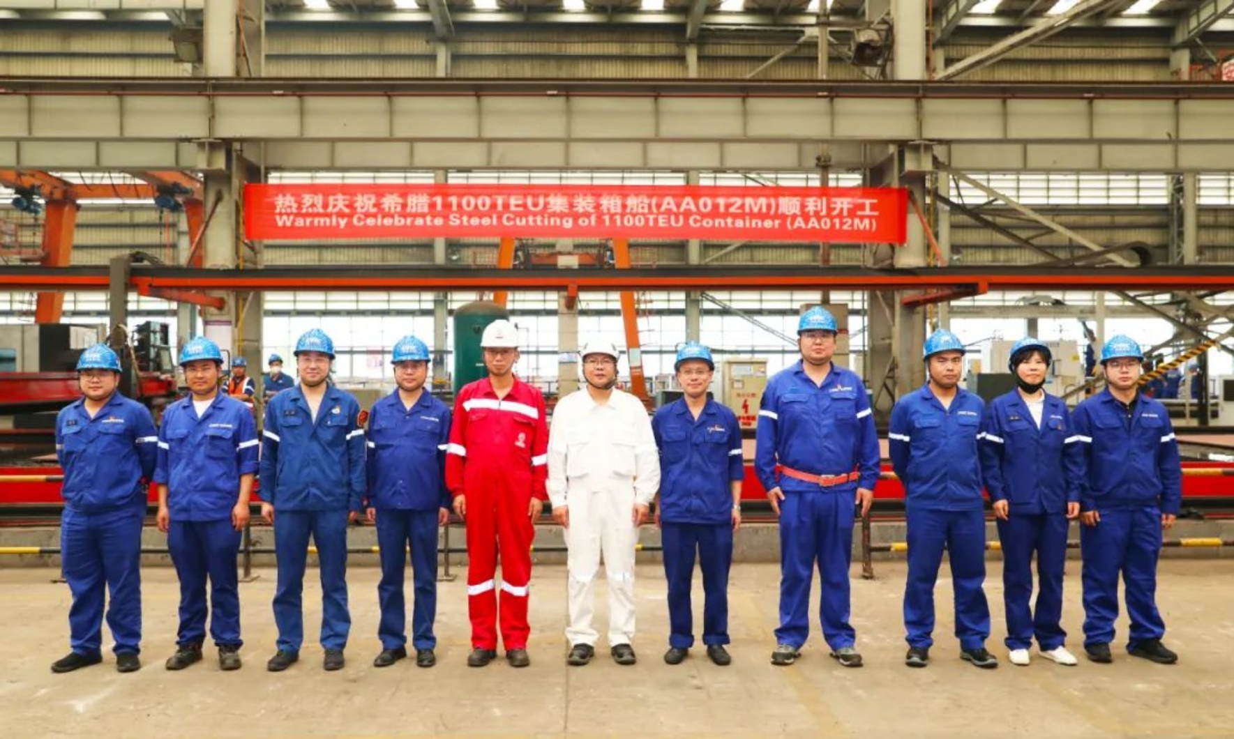 就在今天,中國(guó)船舶集團(tuán)武昌造船為希臘船東Cosmoship建造的1100TEU集裝箱船2號(hào)船在雙柳廠區(qū)順利開工!至此,武昌造船承接的 6艘1100TEU集裝箱船已全部開工!
