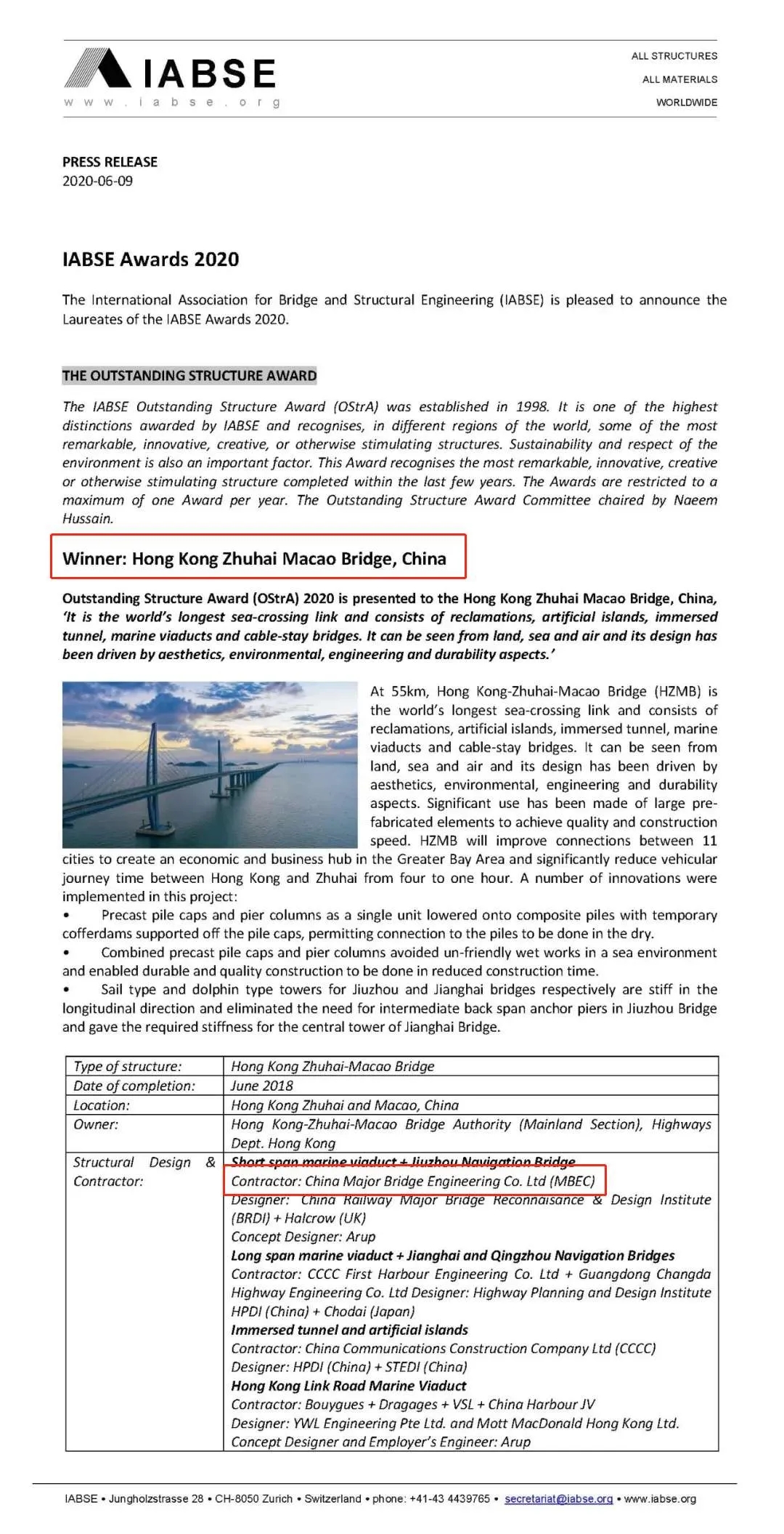 近日,國際橋梁與結(jié)構(gòu)工程協(xié)會(IABSE)公布了入圍及獲得2020年IABSE杰出結(jié)構(gòu)大獎的橋梁,中國船舶武船集團(tuán)武船重工股份參建的港珠澳大橋榜上有名,榮獲2020年IABSE杰出結(jié)構(gòu)大獎(OStrA)。“IABSE杰出結(jié)構(gòu)獎”是國際橋梁工程界公認(rèn)的最高獎項,專門授予全世界最具創(chuàng)新性的橋梁和建筑結(jié)構(gòu)。