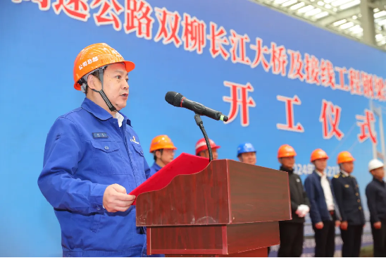 湖北交投雙柳長江大橋有限公司黨委書記、總經理、總監理工程師汪西華宣布開工
