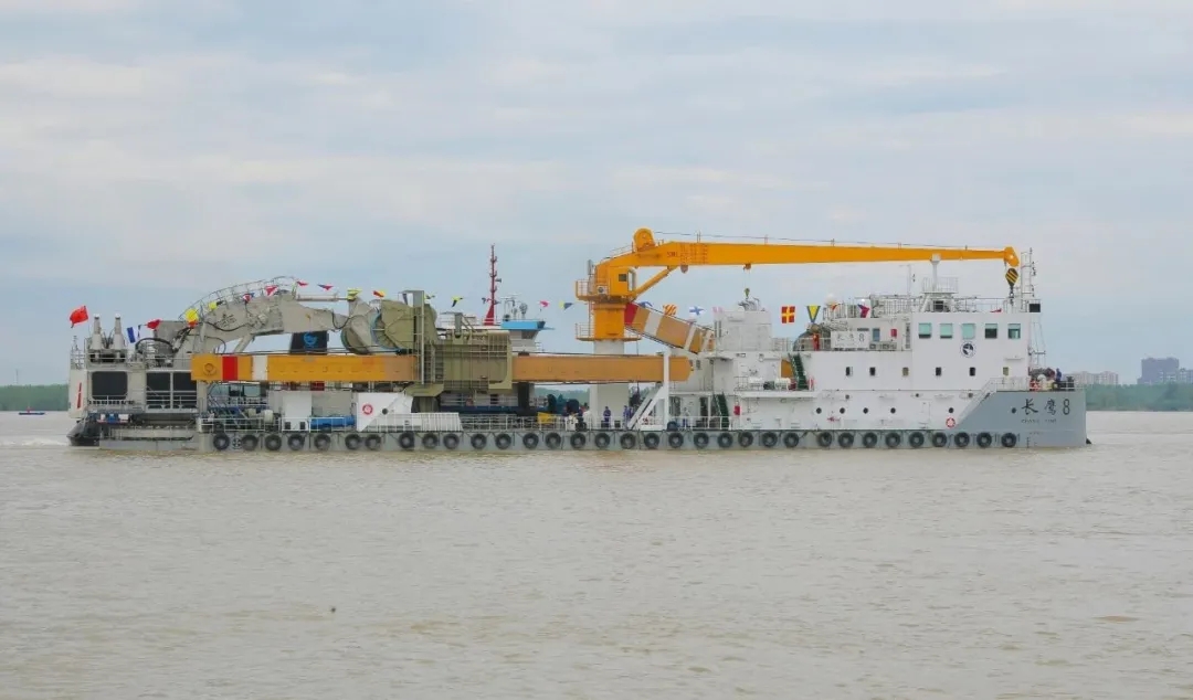 8月8日8時8分,由中國船舶武船集團為長江航道局建造的三峽壩區鏟斗挖泥船“長鷹8”及2000方/時自航絞吸挖泥船-C型“長獅15”在武船集團雙柳基地同時離廠,鏟斗挖泥船拖航至枝江工地進行挖泥試驗,2000方/時自航絞吸挖泥船航行至海門工地進行挖泥試驗。