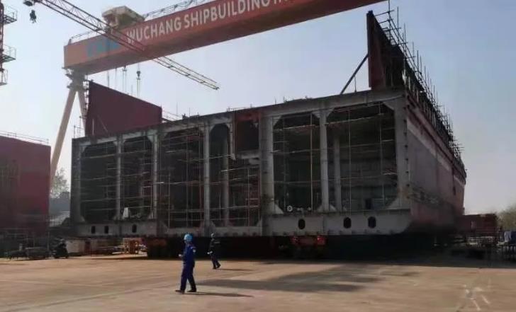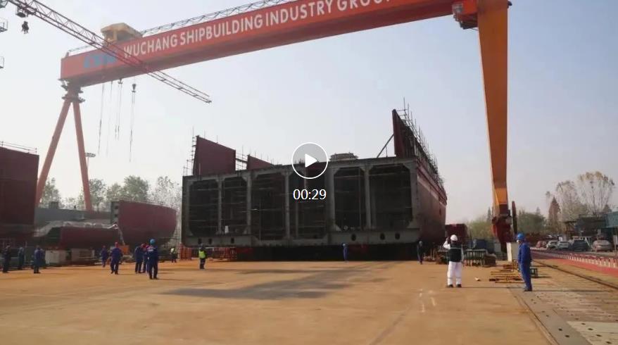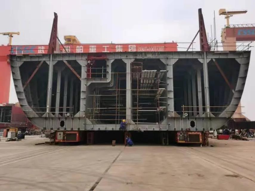 這是公司首次使用模塊車完成近1000噸總段與艉島合攏工作,不僅縮短了船臺建造周期,也為后續(xù)同類型船舶大噸位總段合攏建造打下堅實基礎。