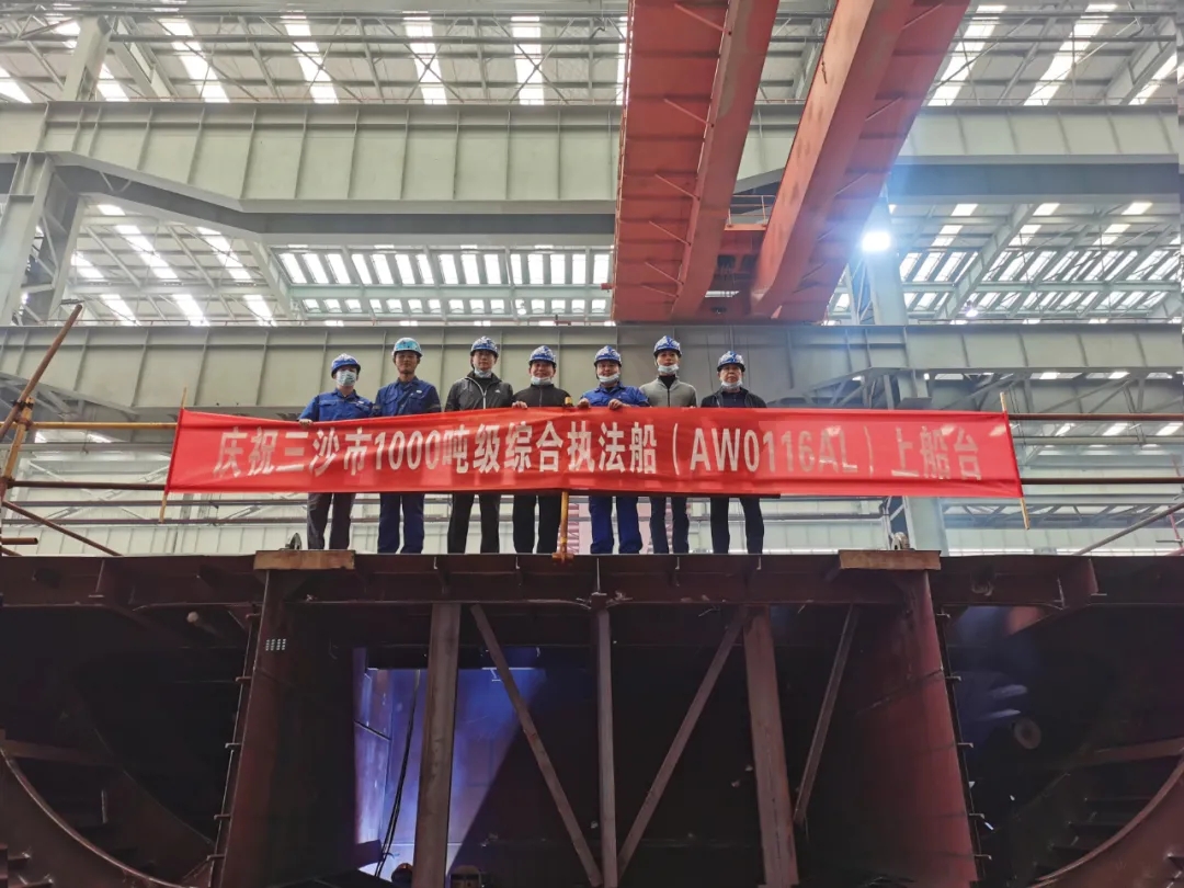 2020年10月19日,中國船舶武船集團承制的三沙市1000噸級綜合執法船首制分段順利上船臺。