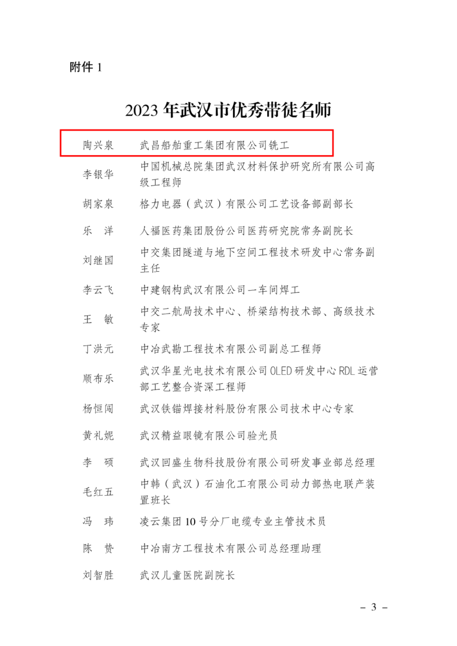 武漢市優秀帶徒名師