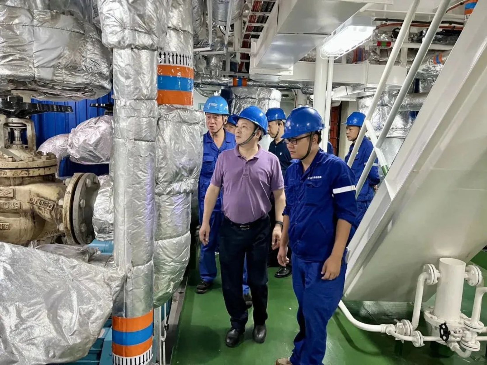 在交船隊項目現(xiàn)場,田軍登上在制船舶,詳細檢查每艘待交付船舶的在泊狀態(tài),并與各項目負責人進行交流,了解船舶計劃周期完成率等情況,對安全、質量等方面提出具體要求,對船舶交付前的部分內裝細節(jié)提出優(yōu)化改造建議,確保向船東交付精品船舶。田軍還通過電話形式,向在寧波的6000噸產品項目組了解產品建造進度,對建造人員表示親切慰問。
