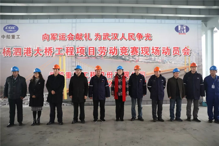 今年元月28日,武漢市總工會(huì)聯(lián)合武船集團(tuán)打響了武漢市2019年“當(dāng)好主人翁 建功新時(shí)代”勞動(dòng)競(jìng)賽活動(dòng)第一槍。武漢市總工會(huì)黨組書記、常務(wù)副主席王芳授予武船楊泗港長(zhǎng)江大橋項(xiàng)目部“勞動(dòng)競(jìng)賽攻堅(jiān)隊(duì)”旗幟,武船重工股份在楊泗港長(zhǎng)江大橋上掀起了大干快上熱潮,全面加快楊泗港大橋項(xiàng)目建設(shè),經(jīng)過(guò)近9個(gè)月的努力,全面完成了競(jìng)賽目標(biāo)。
