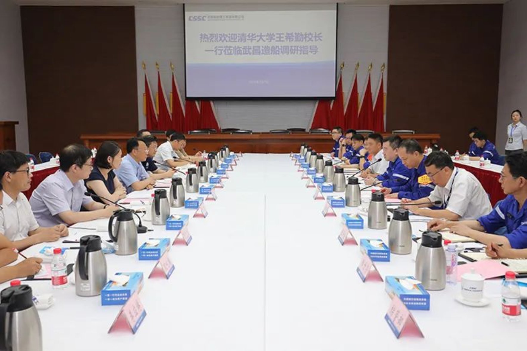 7月7日,清華大學(xué)校長(zhǎng)王希勤一行蒞臨中國(guó)船舶集團(tuán)武昌造船調(diào)研交流。公司黨委書(shū)記、董事長(zhǎng)姜濤,黨委副書(shū)記、總經(jīng)理梁師清及相關(guān)部門負(fù)責(zé)人參加調(diào)研。王希勤一行先后參觀了公司廠史館、生產(chǎn)建造一線,詳細(xì)了解了公司的改革發(fā)展歷程和裝備研制進(jìn)展,聽(tīng)取了在研任務(wù)和校企合作的有關(guān)介紹。