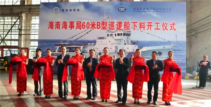 2018年10月26日上午,海南海事局60米級B型海事巡邏船開工活動在武船集團船舶公司內業車間舉行,武船集團副總經理王渭齡致辭,海南海事局副局長效國良發表講話并下達了開工指令。