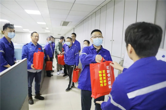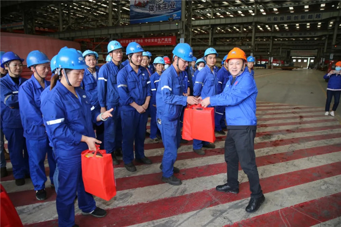 目前,因在制產(chǎn)品周期緊任務(wù)重,為沖刺2020年度目標(biāo)任務(wù),中國船舶武船集團(tuán)干部職工雙節(jié)期間仍然堅(jiān)守工作崗位,奮戰(zhàn)在重點(diǎn)產(chǎn)品、重大節(jié)點(diǎn)施工現(xiàn)場。10月3日,公司領(lǐng)導(dǎo)王渭齡、田軍、唐瀅及公司工會分別在武昌、雙柳廠區(qū)慰問國慶、中秋雙節(jié)期間加班的一線職工和技術(shù)管理人員,表達(dá)公司黨委、行政和工會對各地節(jié)日加班職工的關(guān)心問候和祝福,并送去慰問品。