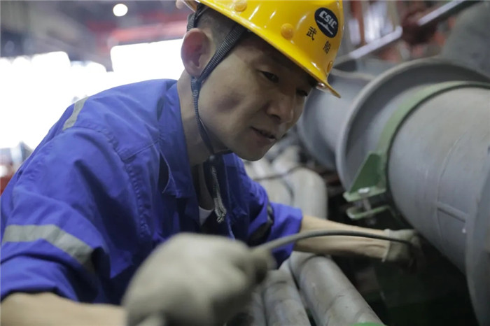 節(jié)假日期間,雙柳廠區(qū),船舶總裝部員工奮戰(zhàn)在生產(chǎn)一線。