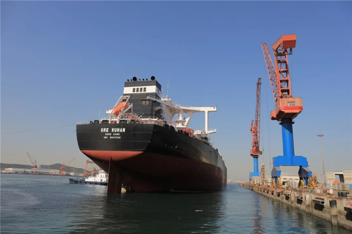 11月9日,中國船舶武船集團北船重工為工銀金融租賃有限公司和招商局能源運輸股份有限公司建造的32.5萬載重噸礦砂船5號船試航凱旋歸來,順利靠泊3號泊位。