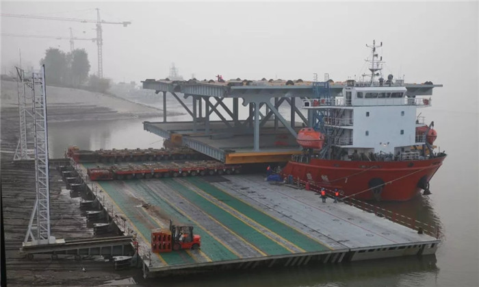 11月30日,一個平凡的日子里,武船重工股份在一天時間里連續(xù)完成了楊泗港大橋G7W、G8H、G9H、G8W、G9W五節(jié)鋼桁梁分段裝船發(fā)運任務(wù),總重達5100噸,一舉創(chuàng)下了公司“橋梁項目單日發(fā)運噸位”新記錄。