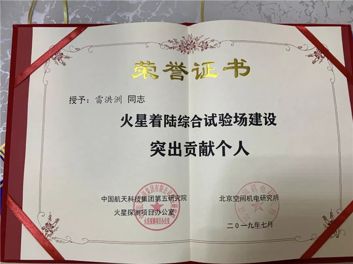 ▲武船集團重裝公司火星著陸綜合試驗場建設施工項目總指揮雷洪洲榮獲“火星著陸綜合試驗場建設突出貢獻個人”