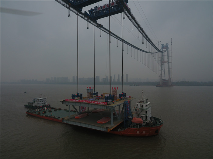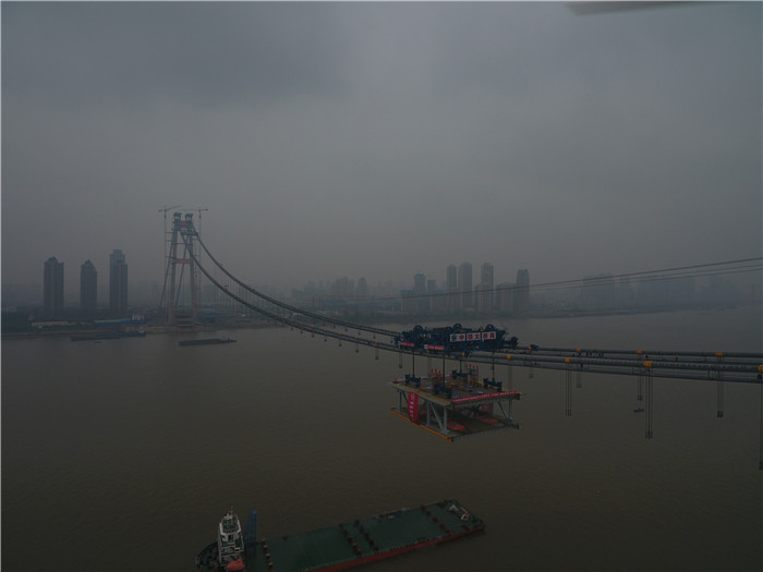 武船造 ? 動(dòng)態(tài) | 國(guó)內(nèi)首座跨長(zhǎng)江雙層公路懸索橋――武漢楊泗港長(zhǎng)江大橋首節(jié)段吊裝成功