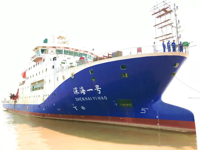載人潛水器支持母船“深海一號(hào)”由中船工業(yè)第七?八所詳細(xì)設(shè)計(jì),由武船集團(tuán)承建,該船總長(zhǎng)90.2米,型寬16.8米,設(shè)計(jì)排水量4500噸,續(xù)航力超過(guò)12000海里,自持力達(dá)到60天,可在全球無(wú)限航區(qū)執(zhí)行下潛作業(yè)。