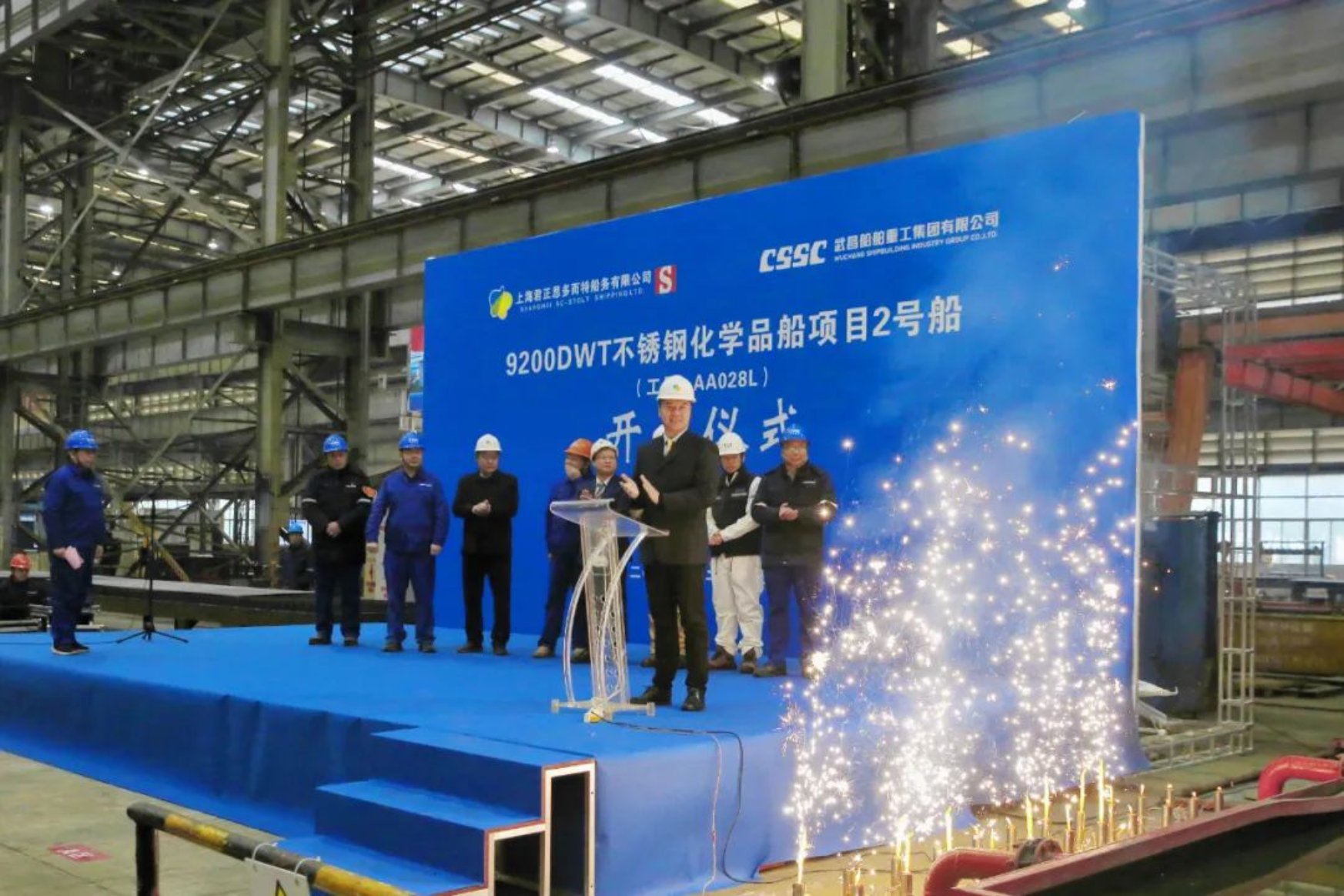 12月15日10時(shí)18分,由中國(guó)船舶集團(tuán)武昌造船為上海君正思多而特船務(wù)有限公司建造的9200DWT不銹鋼化學(xué)品船2號(hào)船正式開(kāi)工!
