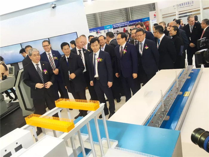 ▲姜明寶、吳金城、郭大成、李長(zhǎng)印、陳冬等嘉賓在雷凡培和楊金成的陪同下參觀展位