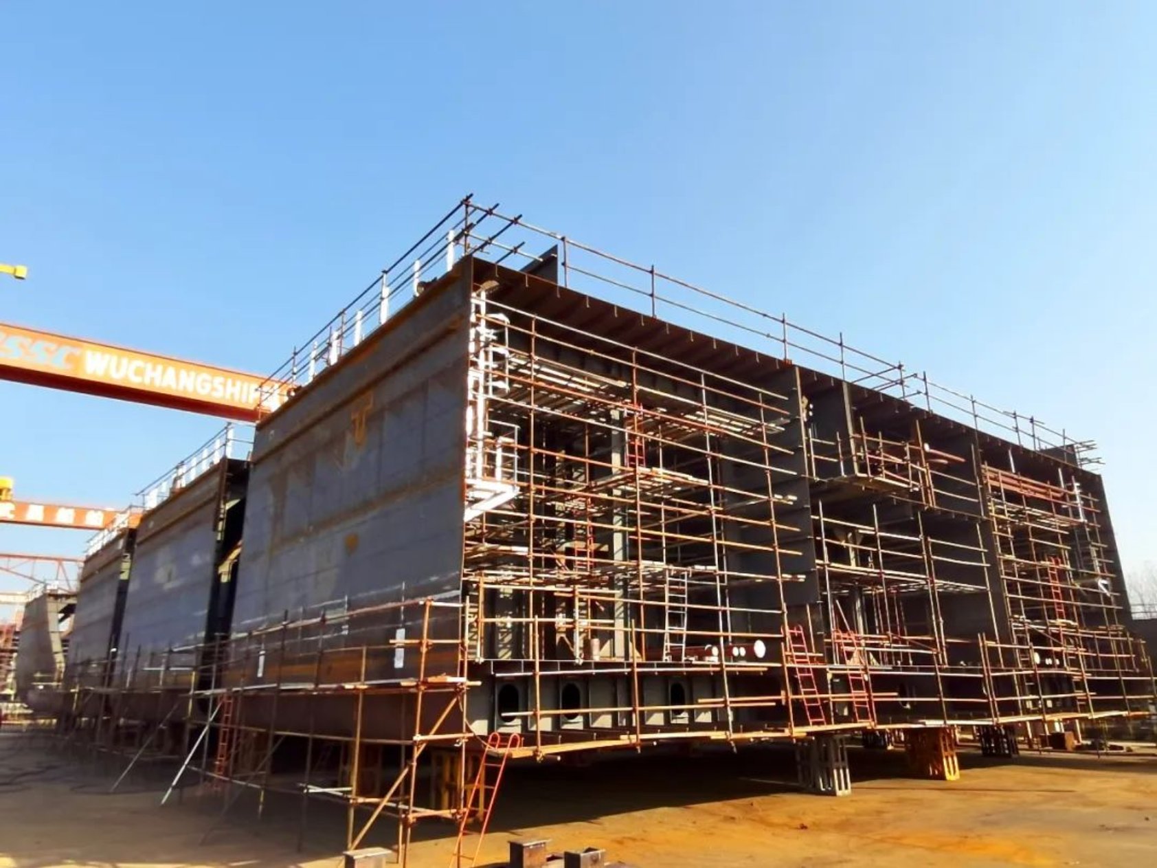 武昌造船承建的13000DWT甲板運(yùn)輸船15號(hào)船上船臺(tái)