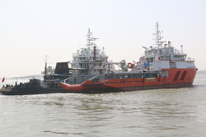 此次兩艘船是三型七艘船項目最后兩艘船舶,前5艘船舶已于3月27日在南通順利交付船東。三型七艘船是船東大西洋海事集團同阿拉伯美國石油公司的租約合同訂制的海工船舶產品,產品具有吃水淺、重量重心和噪音震動控制要求嚴格、并附加阿拉伯美國石油公司額外個性化設計和建造要求等特點,其中45米WUV-4號船總長45米,型寬13米,設計吃水3.0米;58米AHTS-2號船總長58米,型寬16米,吃水4.4米。本系列船舶為操錨拖帶供應及安全守護船,可攜帶燃油、淡水、鉆井水、浮油泥漿、鹽水、散貨水及甲板貨物,并帶有浮油回收、對外消防及拖曳海上鉆井平臺功能,同時可進行救援和維護作業。