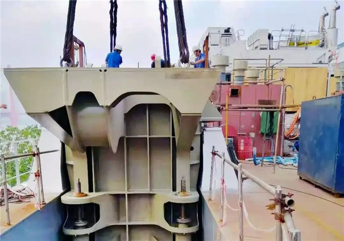 近日,國內首艘自主設計建造的功率最強鏟斗式挖泥船?C?C長江三峽壩區航道維護鏟斗式挖泥船鋼樁定位系統進入船臺安裝階段,首批多型設備順利安裝到位。