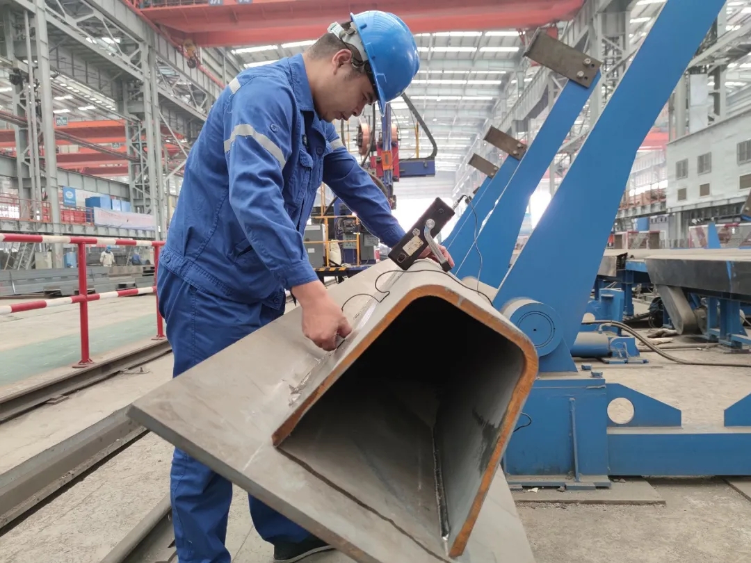 多年來,武船重工股份深耕于鋼橋梁U肋焊接工藝技術(shù)研發(fā),于2008年率先將金屬粉芯藥芯焊絲應(yīng)用于鋼橋梁U肋焊接,后在港珠澳大橋鋼箱梁制造中全面推廣應(yīng)用;2016年在世界范圍內(nèi)率先成功研發(fā)U肋內(nèi)焊成套技術(shù),形成行業(yè)團(tuán)體標(biāo)準(zhǔn)將于今年11月頒布實(shí)施;2019年建成U肋雙面埋弧熔透焊自動(dòng)生產(chǎn)線,實(shí)現(xiàn)了鋼橋面U肋焊縫的全熔透焊接,用于深中通道鋼箱梁U肋的焊接;此次熱軋變截面U肋焊接新技術(shù)的成功研發(fā),標(biāo)志著鋼橋面U肋焊接技術(shù)再上新臺(tái)階。